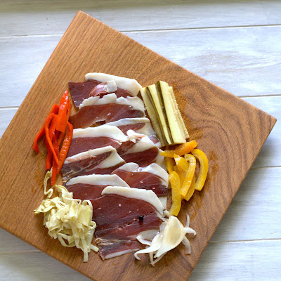 Verschiedene Gurken und gegrillte Zucchini mit Schafmilch-Joghurt-Lassi